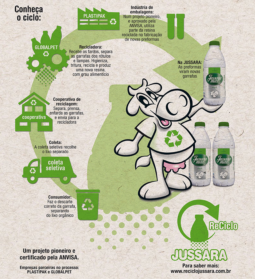 Constantemente buscando solução que além de práticas, possam ser adequadas ambientalmente, a Jussara apresenta este projeto que tem por objetivo transformar garrafas plásticas pós consumo em novas embalagens.