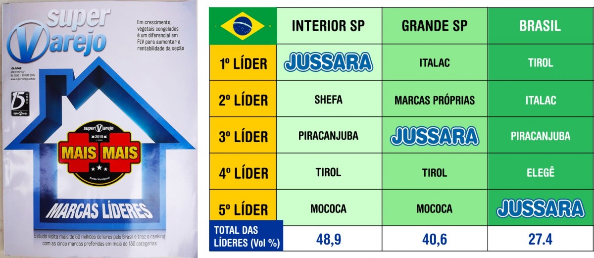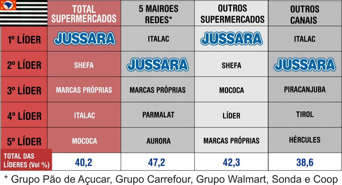 A Jussara figura com grande destaque na categoria de Leite UHT liderando o ranking das marcas mais vendidas de todo o estado de São Paulo. A empresa também foi citada na 3ª colocação em preferência na capital paulista e em 5ª entre os mais vendidos do Brasil.