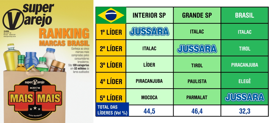 A Jussara figura com grande destaque na categoria de Leite UHT liderando o ranking das marcas mais vendidas de todo o estado de São Paulo. A empresa também foi citada como vice líder de preferência na capital paulista e em 5ª entre os mais vendidos do Brasil.