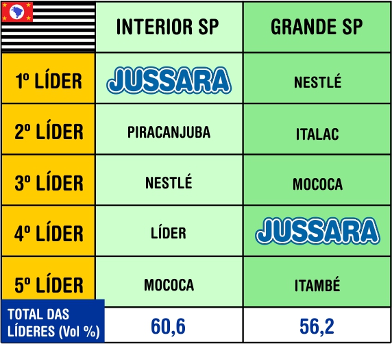 Presença constante entre os maiores em vendas do varejo paulista dos últimos tempos, o leite Jussara segue na liderança em vendas em todo interior de São Paulo.