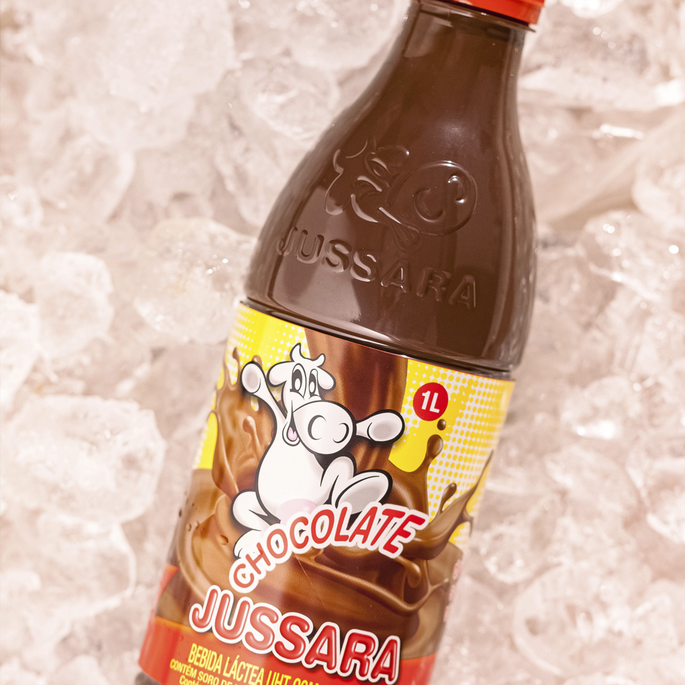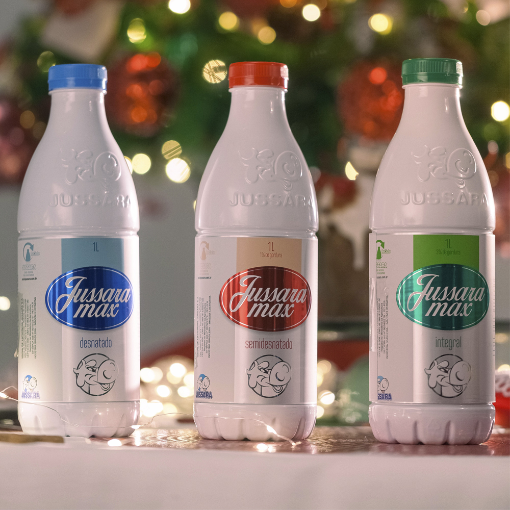 As garrafas das linhas Jussara Max, Zero lactose e Chocolate, ganharam um novo formato mais moderno e elegante.